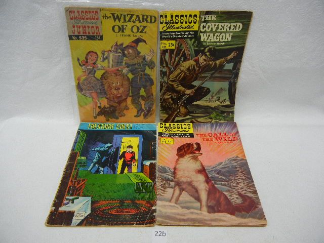 Treasure Chest 10¢ Comic, Wizard of Oz and The Call of the Wild 15¢ Comic, and The Covered Wagon 25¢