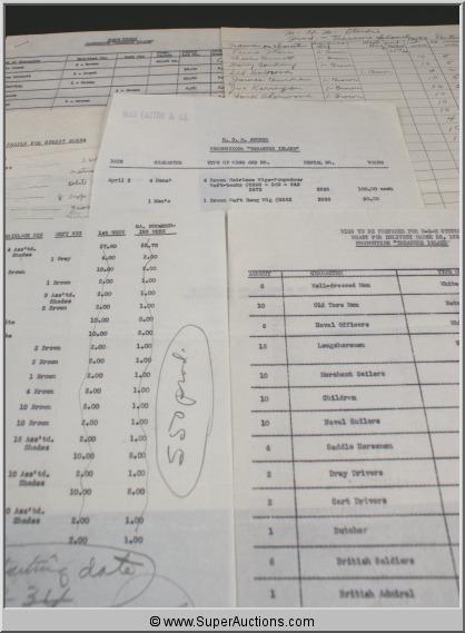 "Treasure Island" / Released August 17, 1934 / MGM / "Young Jim Hawkins is torn between his loyalty to his benefactors and his affection for lovable rogue Long John Silver in their struggle to recover a buried pirate treasure." / Starring" Wallace Berry, Jackie Cooper, Lewis Stone, Lionel Barrymore, Otto Kruger and Chic Sale / Folder contains list of wigs to be prepared for MGM studios-ready for delivery March 25, 1934, Tentative idea of people for street scene, Wig rental register, handwritten notes {Max Factor Collection}