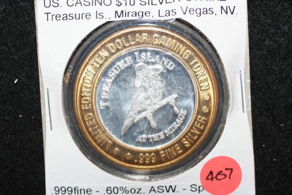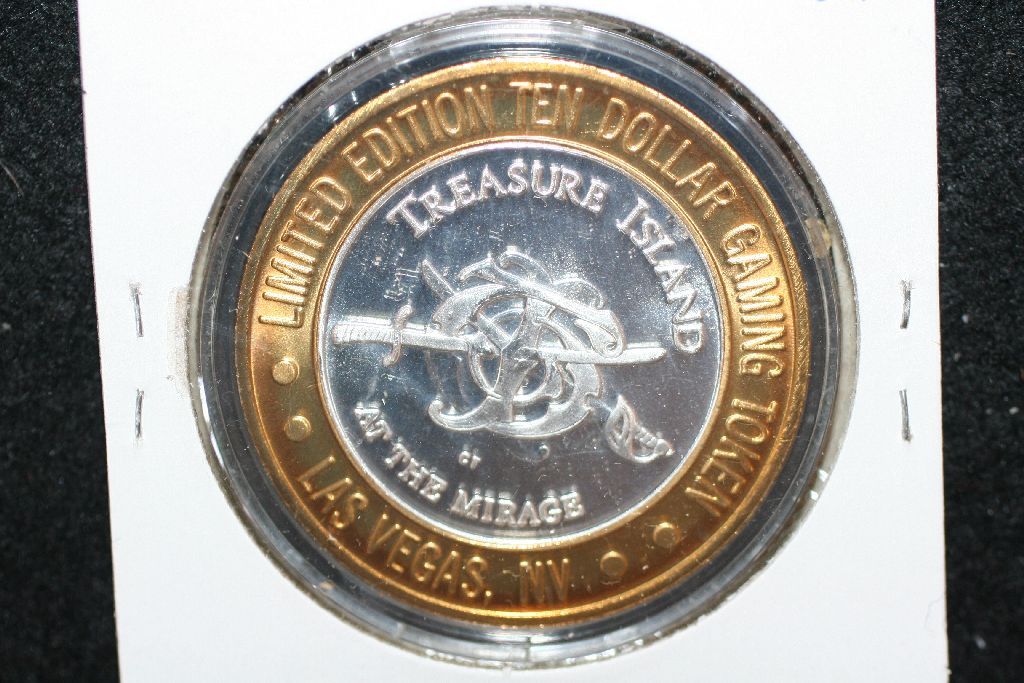 Treasure Island At The Mirage Las Vegas NV Limited Edition Two-Tone $10 Gaming Token; .999 Fine Silver .60% Oz. ASW
