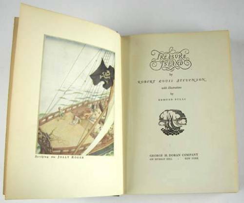 Treasure Island, by Robert Louis Stevenson, illustrated by Edmund Dulac, published by George H. Doran and Company, of New York, from the Estate of Charles Ragland Bunnell, Condition: Good, minor cover wear, no dust jacket