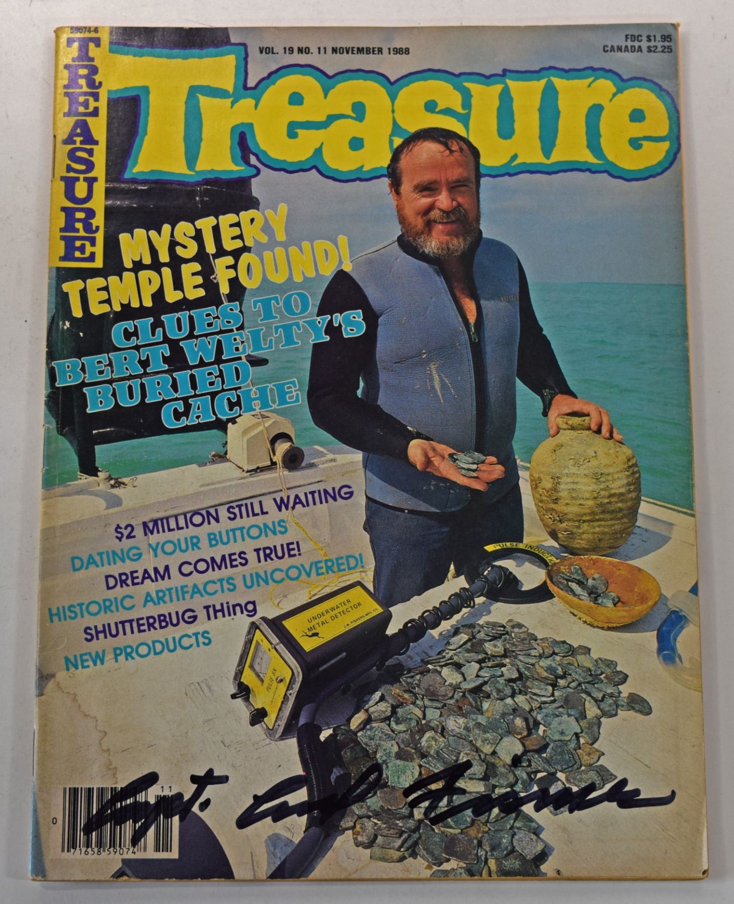 This lot contains the November 1988 issue of the popular treasure hunting magazine, Treasure. It is signed on the cover by well-known treasure hunter, salvor, author and TV personality, Carl Fismer.