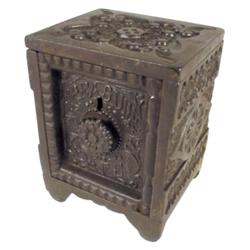 Treasure Safe still bank w/combination lock, J&E Stevens, fancy CI, pat. 1897, VG condition, 5"H.