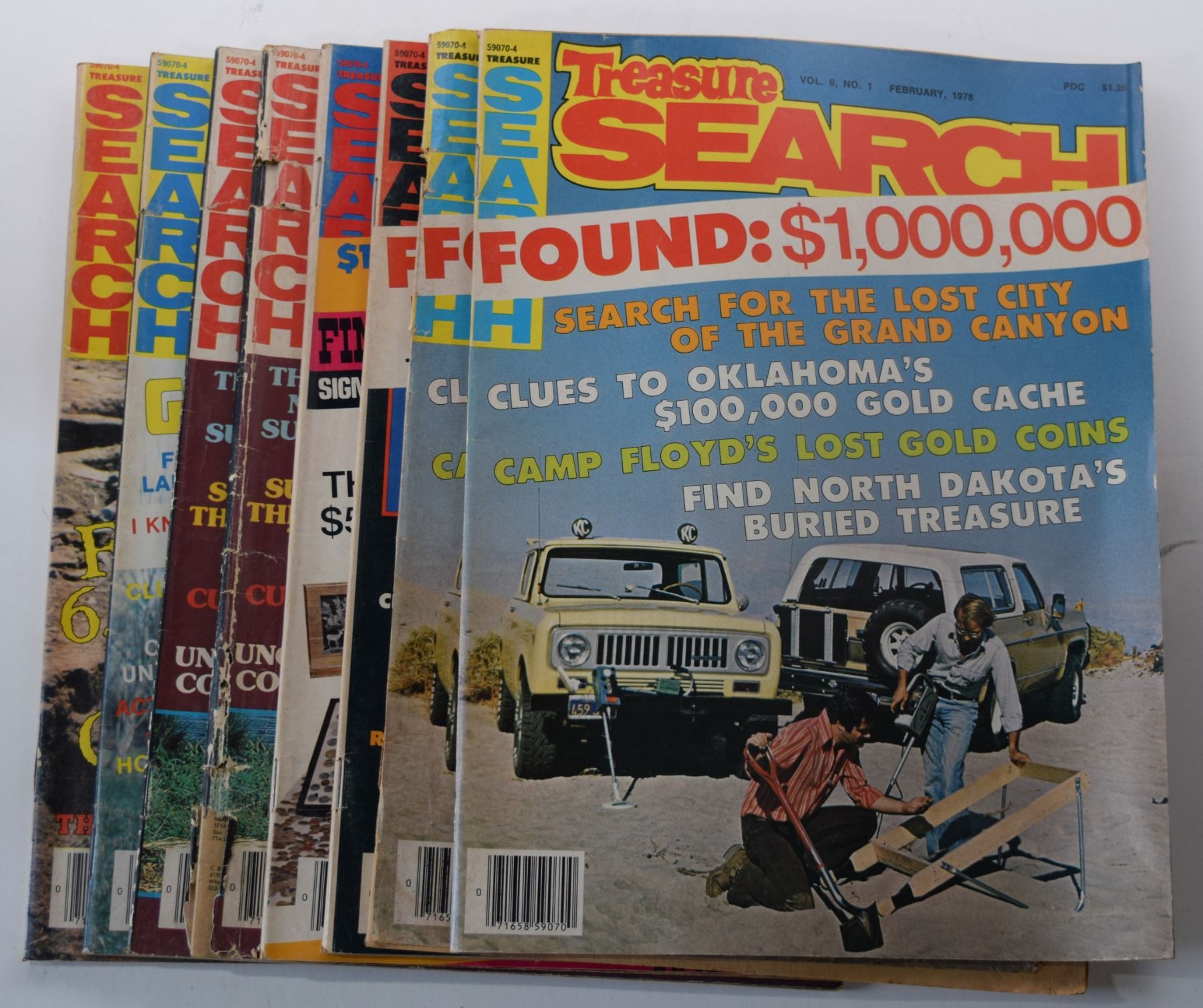 This lot contains issues of the popular treasure hunting magazine: Treasure Search for the year 1978. This magazine was published from 1973 through 1989 as a bi-monthly publication. Issues included in this lot: