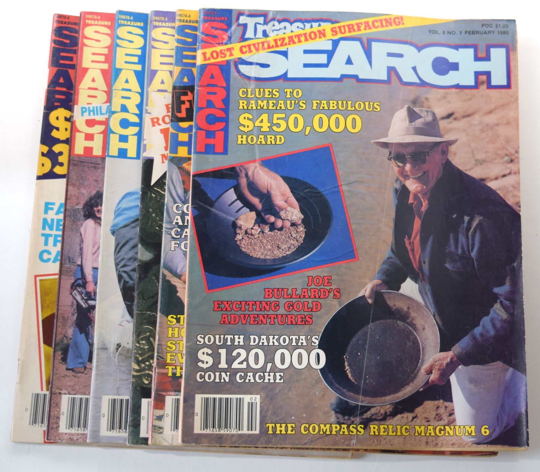 This lot contains issues of the popular treasure hunting magazine: Treasure Search for the year 1980. This magazine was published from 1973 through 1989 as a bi-monthly publication. Issues included in this lot: