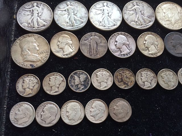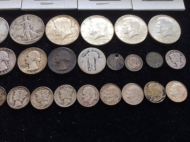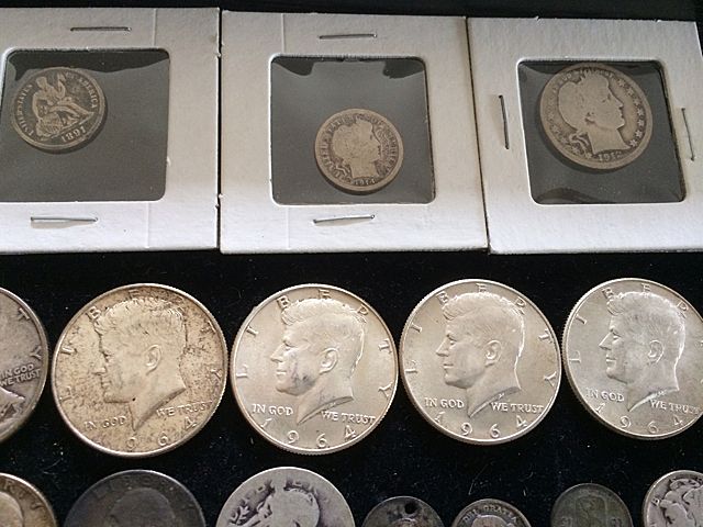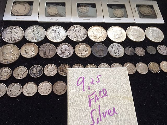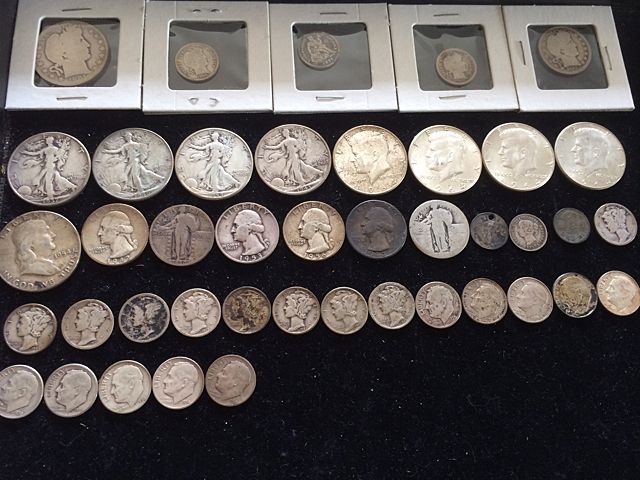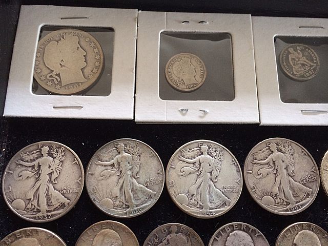 Estate Treasure Trove Coin Lot includes $9.25 Cents face in silver coins: Walking Liberty and Kennedy half dollars, Barber half dollars, Barber & Mercury dimes, 1891 Seated Liberty dime. A very nice lot for a father and son to share and have allot of fun going through together! Would make a great gift! Coin collecting is a great activity for any family to share in.