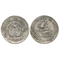1721 - Bogota, Colombia, silver medal, 1892, 400th anniversary of the discovery of the Americas, rare.Sedwick & Associates, LLC