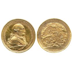 Mexico City, Mexico, gilt bronze proclamation medal, 1789, Charles IV, from the Mexican Consulate. Medina-184; Grove-C3b. 46mm; 61.4 grams. Obverse wi