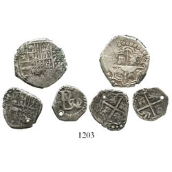 Lot of 3 Potosi, Bolivia, small cobs: 2R, Philip IV, assayer T (partially dated); 1R, Philip IV, assayer T, quadrants of cross transposed; 1/2R, Phili