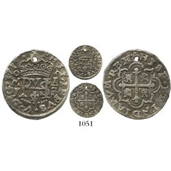1078 - Lot of two Lima, Peru, small silver cobs of Philip II, assayer Diego de la Torre: 1R, *-I to left, PSedwick & Associates, LLC