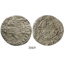 1066 - Lima, Peru, 1/4 real, Philip II, assayer Rincon, legends ending in HI- and -RVM, very rare.Sedwick & Associates, LLC