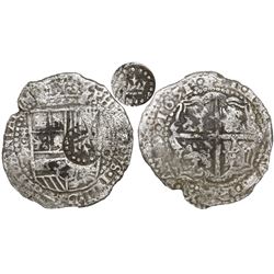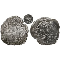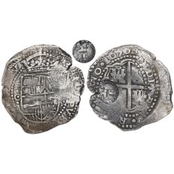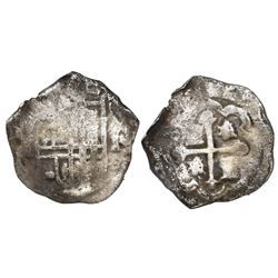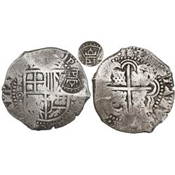 Potosi, Bolivia, cob 8 reales, (1)64(6?), assayer T/V, with unidentified countermark on cross, rare. S-P30; KM-19a. 23.23 grams. Crude (doubled) full