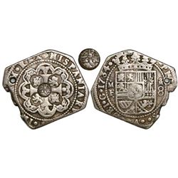 Guatemala, 8 reales, sun-over-mountains countermark (Type II, 1839) on a Potosi, Bolivia, cob 8 reales, 1688VR. KM-96.2; host: S-P40, KM-26, CT-373. 2