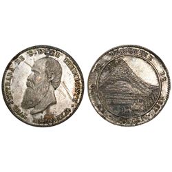 Potosi, Bolivia, 1/10 boliviano-sized silver medal, 1864, Melgarejo, encapsulated NGC MS 63, finest and only specimen in NGC census. Fonrobert-9657; B