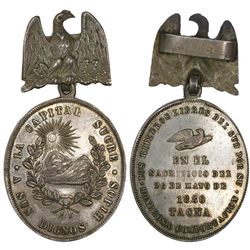 1468 - Potosi, Bolivia, 1/2 melgarejo-sized silver proclamation medal, 1867, small-diameter variety, rare.Sedwick & Associates, LLC