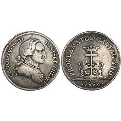 1472 - Cartagena, Colombia, silver proclamation medal, Charles IV, 1789, Maltese cross below bust, rare.Sedwick & Associates, LLC