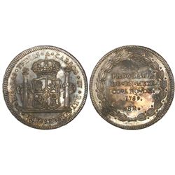 Durango, Mexico, silver medal, Charles IV, 1790, proclamation (New Cantabria). Grove-C56; Fonrobert-6781. 33.97 grams. Dark toned VF+, somewhat rare.