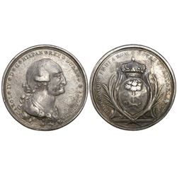 Cartagena, Colombia, silver proclamation medal, Charles IV (bust of Charles III), 1789, Maltese cross below bust. Medina-unl (cf. 138); Herrera-unl (c