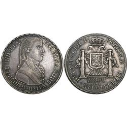 Mexico City, Mexico, large silver medal, Ferdinand VII, 1808, Mexico City proclamation. Grove-F5a. 51.66 grams. Dated August 13, 1808 in exergue, proc