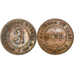 Semil, Puerto Rico, copper 3 almudes hacienda token, Hacienda de Cafe Juana Diaz, Collazo, Perez Guerra & Co. GH-357a. 20mm; 3.40 grams. Haciend...