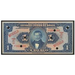 1510 - Brazil, Thesouro Nacional, 1 mil reis specimen, no date (1919), estampa 10, series 1.Sedwick & Associates, LLC