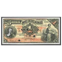 1571 - Mexico, El Banco Mexicano (Chihuahua), 1 peso specimen, 1888, series A.Sedwick & Associates, LLC