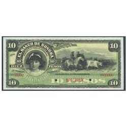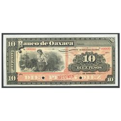 Mexico, El Banco de Oaxaca, 10 pesos specimen, no date (1903-1907). Pick-S372s, Frampton-M448s. Crisp UNC, no issues.