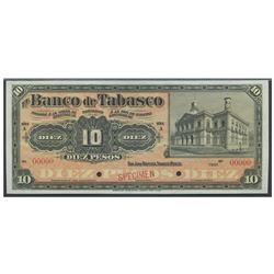 1573 - Mexico, El Banco de Tabasco, 10 pesos specimen, no date (1901-1903), series A, certified PMG Gem UncSedwick & Associates, LLC