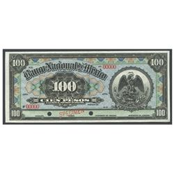 Mexico, El Banco Nacional de Mexico (Distrito Federal), 100 pesos specimen, no date (1913). Pick-S231s2, Frampton-M303s. Crisp UNC, no issues.
