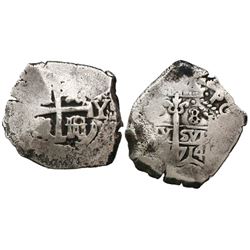 Potosi, Bolivia, cob 2 reales, Philip IV, assayer TR (1630s). S-P27; KM-14a. 7.52 grams. Bold full assayer, some cross and shield but lots of flatness