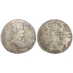 Potosi, Bolivia, bust 8 reales, Ferdinand VII, 1825JL, final date of colonial issues. CT-618; KM-84. 26.79 grams. XF/AU with light hairlines, light ra