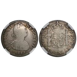 2084 - Bogota, Colombia, bust 1 real, Ferdinand VII (bust of Charles IV), 1817FJ, encapsulated NGC Fine DetSedwick & Associates, LLC