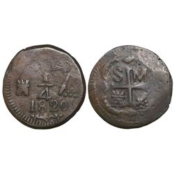 Santa Marta, Colombia, 1/4 real, Ferdinand VII, 1820. Restrepo-104-1; KM-B4; CT-1668. 4.89 grams. AXF on a heavy, thick planchet with dark toning, off