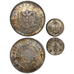 Lot of 3 Bogota, Colombia, 1R: 1833, 1847 and 1852. Restrepo-154.18, KM-87.1; Restrepo-184.2, KM-103; Restrepo-185.2, KM-112. 3.04 grams, 2.34 grams a