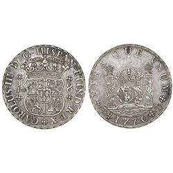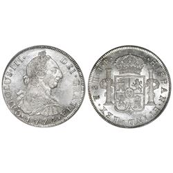 Potosi, Bolivia, bust 8 reales, Charles III, 1776PR, NGC MS 62, finest known in NGC census. KM-55; CT-977. Popular date for US collectors, bright and