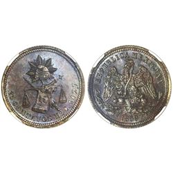 Mexico City, Mexico, proof copper pattern 50 centavos, 1869C, NGC PF 64 BN, finest and only known example in NGC census, very rare. KM-Pn117. Muted l