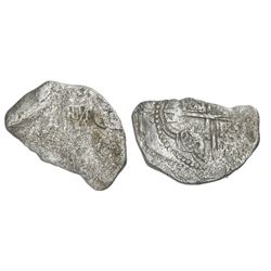 Potosi, Bolivia, cob 8 reales, Philip III, assayer not visible, no Grade (fragment). KM-10. 11.17 grams. Basically half of a coin, with good cross but
