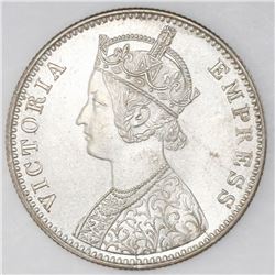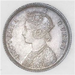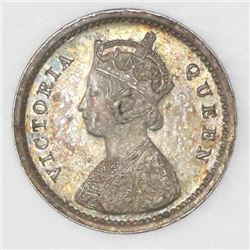 Calcutta, India, 1/4 rupee, 1862-(C ), NGC MS 64. SW-4.130; KM-470. Nicely struck with bold details, hushed luster with darker blue toning. NGC #4725