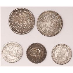 1943 - Lot of five Mexico City, Mexico, pillar reals: 1R 1768M, 1R 1769M, 1/2R 1735MF, 1/2R 1760M, and 1/2RSedwick & Associates, LLC
