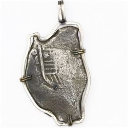 Mexico City, Mexico, cob 1 real, Philip V, assayer not visible, ex-1715 Fleet, mounted in 14K gold-wire bezel with shackle bail. 4.54 grams total. Ro