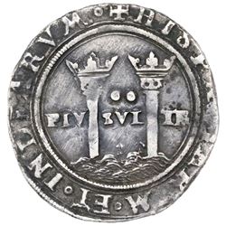 Mexico City, Mexico, 1 real, Charles-Joanna, "Early Series," assayer R (Gothic) at bottom between pillars, very rare, ex-Jones (Plate Coin...