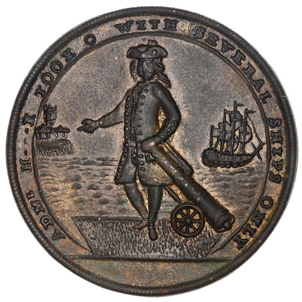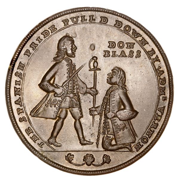 1235 - Great Britain, copper-zinc Admiral Vernon medal, 1739, Porto Bello, Vernon and Lezo, ex-Adams (PlateSedwick & Associates, LLC