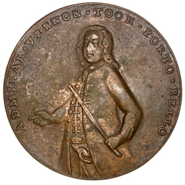1230 - Great Britain, copper-zinc Admiral Vernon medal, 1739, Porto Bello, ex-Adams.Sedwick & Associates, LLC