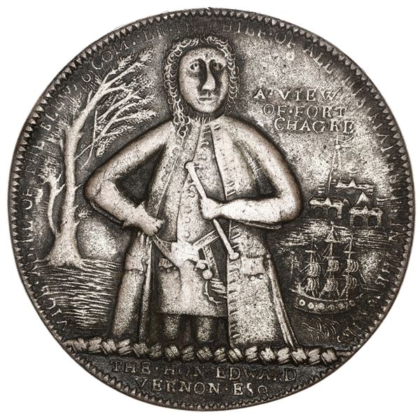 1236 - Great Britain, silver-plated copper-zinc Admiral Vernon medal, 1739, Porto Bello, Fort Chagres, ex-ASedwick & Associates, LLC