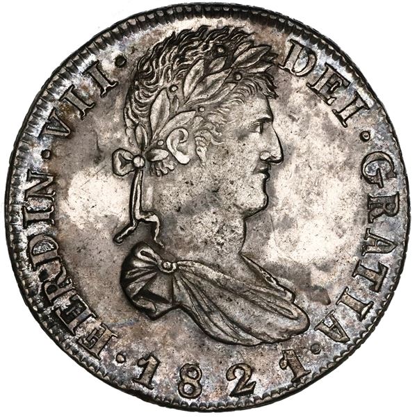 1797 - Zacatecas, Mexico, bust 8 reales, Ferdinand VII, 1821RG, HISPAN variety, NGC AU 58.Sedwick & Associates, LLC