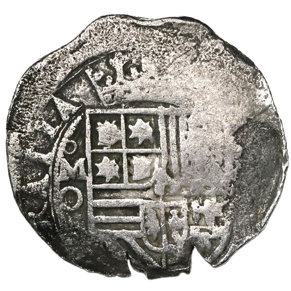 Mexico City, Mexico, cob 2 reales, Philip II, assayer O below mintmark oM to left, Grade 3, with original division letter ("206 points"). ...