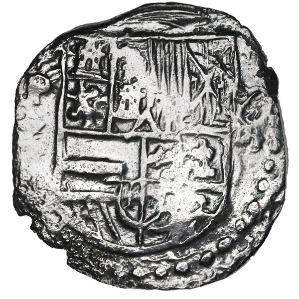 87 - Potosi, Bolivia, cob 8 reales, Philip III, assayer not visible, quadrants of cross transposed, GradeSedwick & Associates, LLC