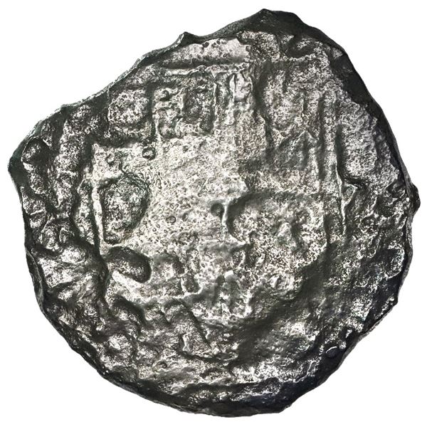 Potosi, Bolivia, cob 8 reales, Philip III, assayer not visible, quadrants of cross transposed, Grade 2. KM-10; Cal-Type 165. 25.97 grams. Minimal corr