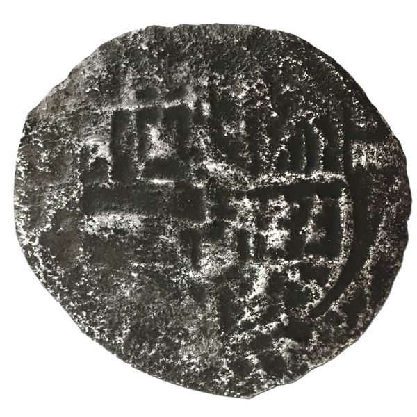 Potosi, Bolivia, cob 8 reales, Philip III, assayer not visible, Grade 4. KM-10; Cal-Type 165. 18.67 grams. Good full shield and cross despite moderate