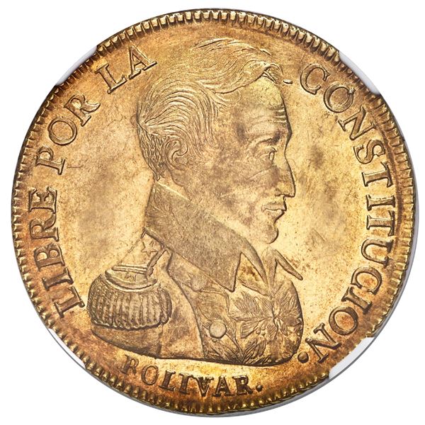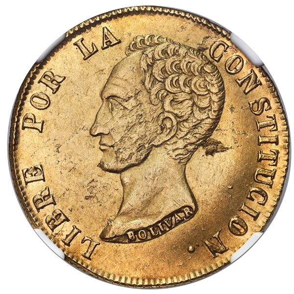 Potosi, Bolivia, gold 2 scudos, 1834LM, rare, NGC MS 63, ex-Newman. KM-101. Well-detailed and well-centered strike, good luster, light adjustment mar