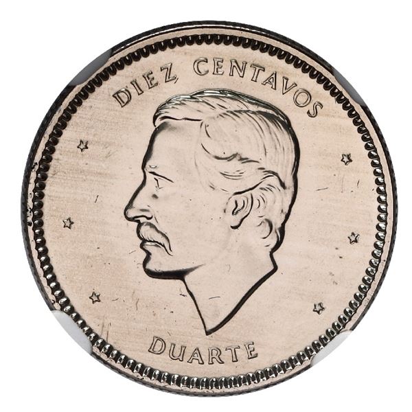1013 - Dominican Republic, copper-nickel 10 centavos, 1986, NGC MS 67, ex-Rudman.Sedwick & Associates, LLC